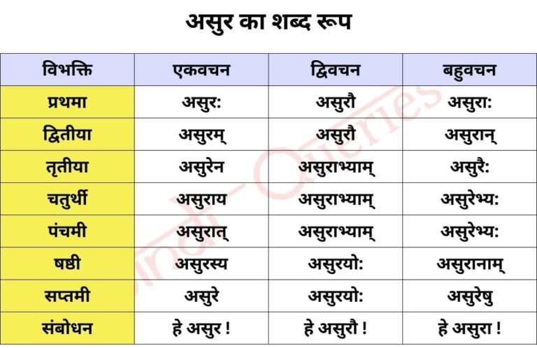 असुर का शब्द रूप, असुर का शब्द रूप संस्कृत में, असुर शब्द, असुर शब्द रूप संस्कृत, असुर की विभक्ति, Asur …